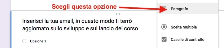 1. Inserisci la tua email, in questo modo ti terrò aggiornato sullo sviluppo e sul lancio del corso