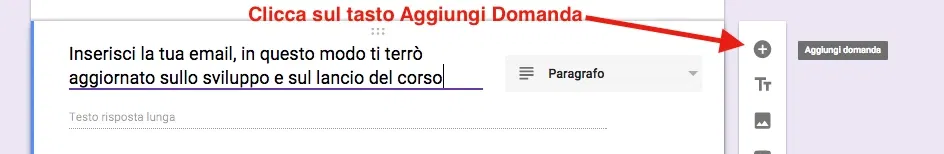1. Inserisci la tua email, in questo modo ti terrò aggiornato sullo sviluppo e sul lancio del corso