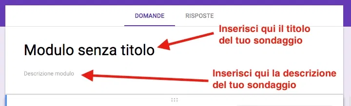 - Inserisci il titolo e la descrizione del tuo Sondaggio: